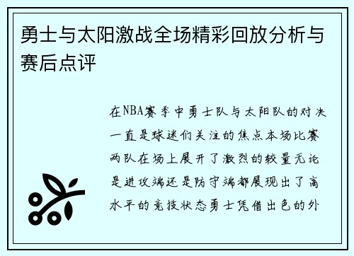 在NBA的赛场上,国王队与湖人队的对决一直以来都备受瞩目。两支球队在历史上有着较为深厚的渊源,每一次交锋都充满了悬念和激情。本文将对国王与湖人精彩对决进行全程比分直播跟踪分析,并实时更新赛况,带领读者深入了解比赛进程。本篇文章将从四个方面进行详细解析:首先,我们将回顾两队近年来的交手记录及其影响;其次,我们将分析本场比赛的关键球员表现;接着,我们将探讨战术布置和球队调整的重要性;最后,我们还会关注...